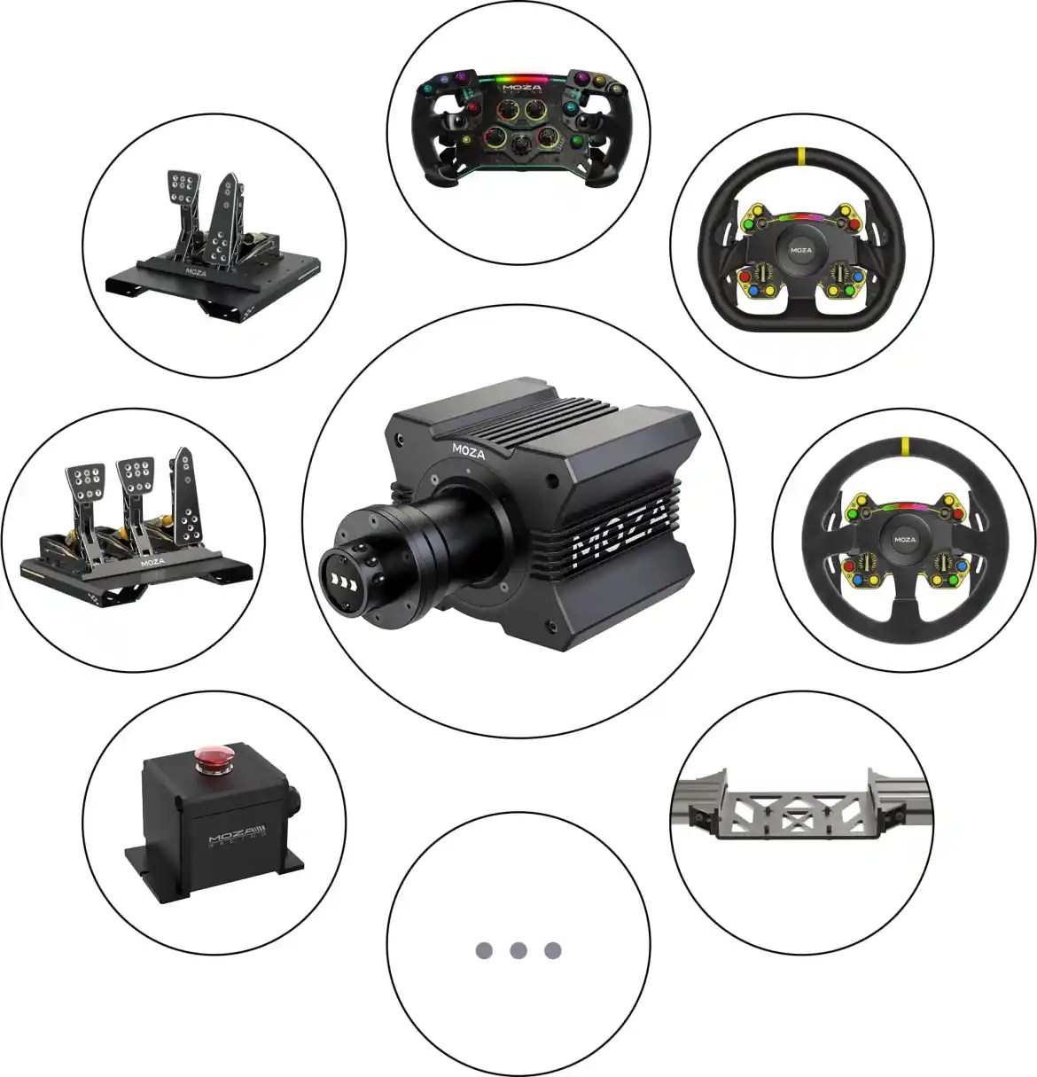 The settings of the wheel base, steering wheel, pedals, etc. can be modified through the MOZA APP. Settings can be imported with one click onto new simulators.